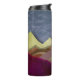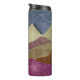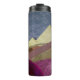 Uma paisagem abstrato com cores e texturas únicas mostrando uma cena de montanha em tons de roxo, bronzeado, bege e e marrom.