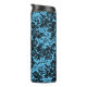 Um padrão floral dramático na moda preto em um pano de fundo azul turquesa criando vibrações elegantes dramáticas onde no meio está um círculo negro com um roteiro elegante onde você pode personalizá-lo com uma letra, um nome ou um logotipo para torná-lo exclusivamente seu. Parte da Coleção Floral Na moda Black.