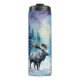Uma obra de arte única e original de um belo alce numa cena noturna serena de inverno.