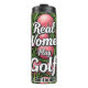 Este gráfico apresenta um design ousado, de dois tons, com o texto 'Real Women Play Golf' sobre um padrão estilizado de bolas de golfe na grama. A design é simples, clara e faz uma declaração forte e divertida.