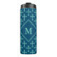 CANECA DE VIAGEM azul-na moda e azul-marinho-claro com impressão-azul-marinho-de-todos-os-ao-mar contra um fundo azul-oceano. Há um monograma personalizável no centro, então você pode personalizar com o seu próprio. Clique no botão Personalizar mais para alterar as cores para corresponder ao esquema de cores desejado. Outras versões disponíveis na Coleção de PÁSCOAS por Designs Berean.