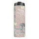O na moda e o moderno tumbler térmico do chiffon apresenta um design eclético da boêmia com zebras, borboletas, impressão leopardo e contorno floral em rosa e cinzas pastel e uma elegante borda de padrão de cheque preto e branco. Desenvolvido exclusivamente para você pelo Happy Dolphin Studio.