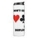 Mostre seu humor de ponte repetidamente veloz com este tumbler térmico que apresenta os quatro naipes de placa junto com o ditado "Don't Get Emotional Play Duplicate Bridge". Não é preciso ser professor de ponte ou jogador de ponte ávido para desfrutar desse tumbler térmico com uma dose de conselho de ponte sonora hoje!