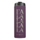 Se você está se perguntando quais combinações de cores escolher para a decoração de Natal e os suprimentos de embrulho de presentes deste ano, eu criei coleções de padrões coordenados para tornar a vida um pouco mais fácil. Este copo térmico apresenta uma simples mensagem tipográfica de 'Fa La La La La' verticalmente no meio em verde-oliva suave sobre a cor de fundo de sua escolha. Adicione seu nome usando o modelo fornecido. Procure por ID1009 para ver outros produtos e padrões nesta paleta de cores.
