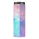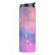 Uma imagem horizontal que representa uma nebulosa fantástica e cósmica com cores pastéis macios. A imagem apresenta nuvens brilhantes de gás cósmico e poeira em rosas claro, azul-claro e matizes ouros, interligadas com um fundo azul-púrpura. Estrelas espumantes e pequenos pontos de luz se espalham pelo espaço, criando uma cena sonhadora e mágica.