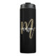 Garrafa Térmica Nome do Monograma de Script Moderno Dourado Preto