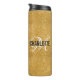 Tumbler térmico brilhante de ouro chico com um nome de tipografia preta e um monograma de script branco. Personalize com nome e inicial.