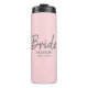 Mantenha-se hidratado no estilo com este Tumbler Térmico de Nome Personalizado de Script de Cinza Rosa Moderno. Ele foi projetado com "noiva" em letras modernas de script escovado de cinzas. Personalizado com o nome da noiva e ano de casamento. Plano de fundo cor-de-rosa embebido personalizável. Ideia de presente de excelente para chá de panela, festa de solteira ou lua de mel.