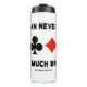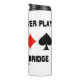 Se você sentir que nunca pode jogar muito bridge e jogar nas últimas horas da manhã em torneios de ponte, você vai gostar desse tumbler térmico com quatro naipes de placa junto com o ditado "Nunca é Possível Jogar Muito Ponte". Faça com que os outros façam uma dupla tomada com uma dose de ponte na bochecha / estilo de ponte duplicado hoje com este tumbler térmico!