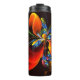 Garrafa Térmica Padrão de Abstrato de Arte Floral Azul Laranja Mod