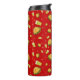 Tumbler térmico com padrão de hambúrgueres sobre fundo vermelho