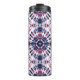Veja este design com um padrão de tintura azul e vermelha.
