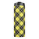 O tumbler térmico apresenta o padrão de verificação "lumberjack" diagonal preto e amarelo com cobertura de grade dourada mate. *Disponível em sete combinações de cores!