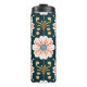 Garrafa Térmica Padrão Floral Laranja num Fundo Preto