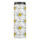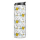 Ângulos e círculos lineares pretos nas cores primárias do vermelho, amarelo e azul constituem o padrão retrorreflector contemporâneo que embelezou esta caneca térmica, que lembra o Meio século moderno e a Idade Atômica dos anos 50 e 60.