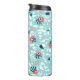 Tumbler divertido do terrazzo com um padrão geométrico sem costura com olhos estranhos em algumas das pedras de mármore do abstrato em corais e cores azuis.