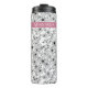 Garrafa Térmica Padrão Preto Branco Floral Desenhado à Mão e Nome