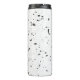Pequenas cinzas pretas e microleves, estilhas Terrazzo em um fundo branco, decoram este tumbler térmico de 12 oz. Altere facilmente o nome com o Modelo fornecido; amplie o espaço para adicionar texto. Corpo sem manchas, tampa de plástico. A construção de paredes duplas seladas por vácuo retém temperatura, calor ou frio. Consulte "Sobre este produto" ao lado para obter mais informações e cuidados.