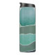 Esta paisagem de fantasia está em lindas camadas texturizadas e tons de turquesa e aqua com sol e colinas e montanhas.