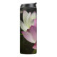 Às vezes você encontra lindas plantas além dos animais incríveis no zoológico. Aqui está uma foto de flores roxas e lótus brancas e suntuosas. Vejam a nossa loja para fotos mais adoráveis de lírios e flores de lótus iluminados por sol. Esta imagem também é apresentada como o papel de parede panorâmico "Par of Lotus Flowers II", em www.mlewallpapers.com.