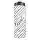 Tumbler térmico para ela no dia do noivo. Personalize o texto neste designer design de faixa diagonal em negrito e branco com nome ou mensagem, ou o texto é removível. As cores podem ser trocadas para qualquer cor.
