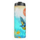 Este lindo design retrata um pássaro azul e dourado fazendo uma aterrissagem em uma árvore ouro com um belo céu de muitas cores azuis e um sol laranja ousado.