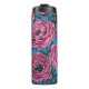 Garrafa Térmica Peônias e chaves à mão azul