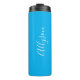 Garrafa Térmica Personalizar Nome Vertical, Script Branco, Azul Cé