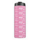 A pretty personalized thermal tumbler gift for a little girl decorated in nine different fonts spelling your name in white. Cute customizable present with fun typography.