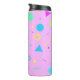 This stainless steel travel tumbler showcases a lively Memphis geometric retro pattern on a bright pink background. Featuring bold neon shapes and a playful 80s vibe, it’s perfect for carrying your coffee, tea, or any drink on the go in stylish retro fashion.
