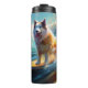 Garrafa Térmica Pintura de Navegação em Praia no Alaska Malamute