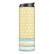 Bonito Tumbler térmico feito em preto, amarelo e branco, com pontos brancos e listras horizontais. Personalize o monograma de uma letra, na frente do batedor. Excelente de presente para ela.