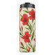 Garrafa Térmica Portátil  florais vermelha design artístico
