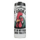 Esta ilustração gráfica apresenta um galo estilizado com uma expressão séria e um pente vermelho grande no centro. As galinhas circundantes são desenhos simples de preto-e-branco. O texto "EU POSSO PARECER CALMO, MAS NA MINHA CABEÇA ESPEREI-TE 3 VEZES..." está escrito em letras negrito, dando à imagem uma sensação corajosa e ousada.