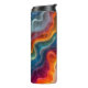 Uma imagem vibrante e abstrato de um tecido colorido e em camadas. O tecido é organizado em uma série de camadas sobrepostas e rebuscadas, criando um padrão semelhante a onda. As cores são ousadas e saturadas, que vão do azul profundo a laranja vibrante. O tecido parece estar molhado, uma vez que pequenas bolhas de água são visíveis na sua superfície. A imagem é uma celebração de cor e textura, capturando a beleza de um material simples transformado em obra de arte.
