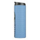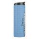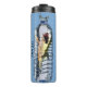 Tumbler térmico personalizado legal, com trabalho de arte gráfico de um tubarão branco excelente preso em uma garrafa de água, contra um fundo azul de onda espiralada. Personalize o texto preto personalizado para atender às suas necessidades.