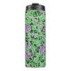 Pretty purple floral pattern with green leaves, popular ornamental design.