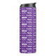 A pretty purple personalized thermal tumbler gift decorated in nine different fonts spelling your name in white. Cute customizable present with beautiful cursive typography.