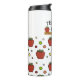 Tumbler térmico personalizado do professor de na moda feito em branco, com gráficos de maçãs vermelhas e bolinhas coloridas. Uma régua, com duas maçãs vermelhas, no topo do cambaleão, tem texto gráfico preto lendo Regra dos Professores. Personalize para adicionar qualquer texto adicional à ideia de presente deste professor de excelente.