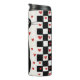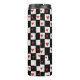 Esta ilustração esbranquiçada e texturizada apresenta um gato preto majestoso vestindo uma coroa e uma coleira ouro. O gato estilizado é colocado contra um padrão de pranchas de xadrez preto e branco, em negrito, com muitos corações vermelhos flutuantes enchendo o espaço.
