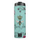Garrafa Térmica Rainha Turquesa Abelha e Coroa de Ouro Monograma F