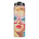 Garrafa Térmica Retro Beach Girl com óculos de sol florais