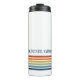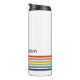 Sip in style with this Retro Monogrammed Minimalist Stripes Thermal Tumbler. Featuring bold blue, turquoise, green, orange, and terracotta stripes, it blends vintage charm with modern, minimalist design. Personalize it with your name or initials for a unique, standout touch that makes it truly yours. Perfect for keeping drinks cold, this custom tumbler is ideal for gifting or adding a stylish, personal touch to your daily routine.