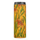 Garrafa Térmica Robins e flores, cor de laranja e verde