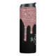 Glitter Brilhante Dourado de Rosa feminino Monograma Tumbler térmico com brilho fino cor-de-rosa/rosa de ouro rosado com moda pinga em um fundo preto chic com seu monograma e nome personalizados. Projetado por Cedar e String. Para personalizar ainda mais, clique no link "personalizar mais" e use a ferramenta design para modificar o design. Se precisar de assistência ou itens correspondentes, entre em contato conosco.