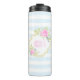 Rosas Rosa Bonitas de Monograma Tumbler Térmico de Amoras Blueberry. Monograma floral rico com rosas e mirtilo. Muito ornamentado e alegre, com um aspecto ligeiramente vitoriano ou chique. Cores do Pastel: rosa, azul, verde. Listras azuis claras. Monograma cor-de-rosa e ouro (ouro não é ouro real, mas cor).