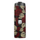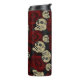 Garrafa Térmica Rosas Vermelhas & Caveiras Cinza Preto Floral Góti
