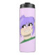 Cartoonista decorativo e divertido rosto feminino desenhado. Aspecto otimista e observante, com cabelo roxo. Esta ilustração funciona na cor de fundo personalizada. Cred: Caroline 2021