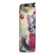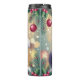 The kitten is prominently featured wearing a classic red Santa hat with a white pom-pom and a chunky, red knitted scarf. The background is a soft blend of evergreen garland, hanging ornaments, and twinkling string lights, creating a magical, snowy, and slightly blurred bokeh effect that brings the kitten into sharp, adorable focus. This portrait perfectly captures the innocent charm and festive spirit of the holiday season, making it ideal for a mug, tumbler, or seasonal card