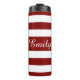 Tumbler Térmico de Script de Stripes Vermelhas Modernas.